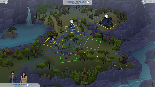 模擬市民4吸血鬼這個擴充包有一個獨立的小地圖-遺忘山谷 ,這個地圖除了中央的公園就沒有其他公共區域,全部能建造的地方都是住家,一開始就有3個吸血鬼家族住在這邊,有兩個空的可以創建新的家庭。