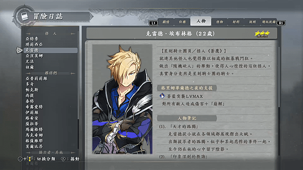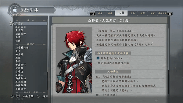 亞特魯的攻擊速度非常快也能夠快速移動到快物旁,也有攻擊範圍較大的技能可以使用,相較於伊蘇8我覺得伊蘇9的亞特魯超級好用是從遊戲一開始用到最後都不會想替換的角色。