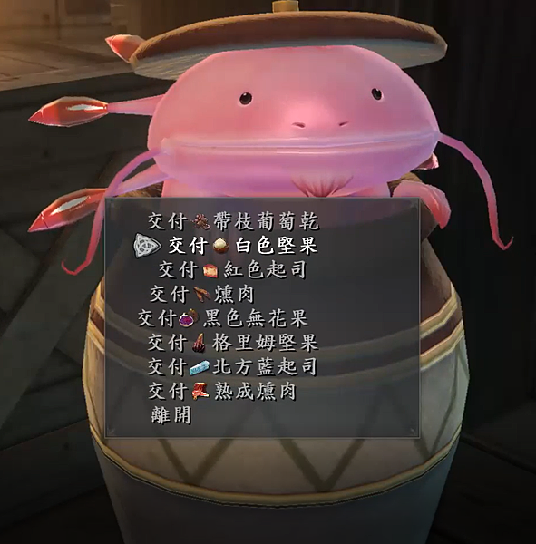 食材:在市場那的河川遇到摩爾比安並邀約他成為夥伴後,可以給他食材,可以兌換食譜及其他獎勵。